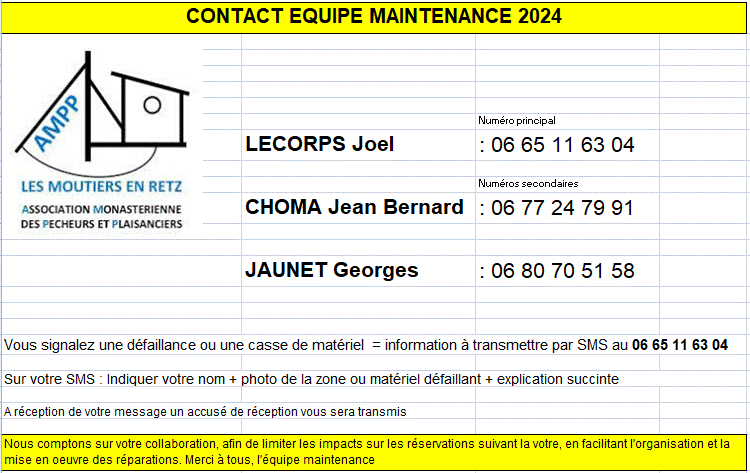 En cas d'impossibilité de vous rendre sur la pêcherie réservée, merci de nous prévenir afin de rendre le créneau disponible pour un autre adhérent!